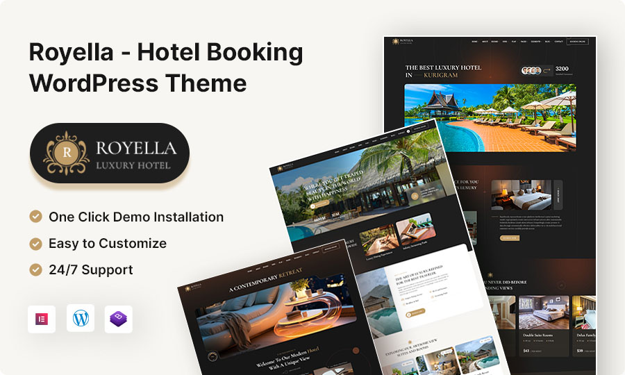 Royella Resort & Hotel Booking WordPress Theme is a feature-rich WordPress theme crafted for hotels, resorts, and vacation rentals. Its modern design and interactive sliders let you highlight your property’s best features, while the integrated booking system makes reservations simple, fast, and secure. Guests can explore rooms, check availability in real-time, and complete bookings without leaving your site.
