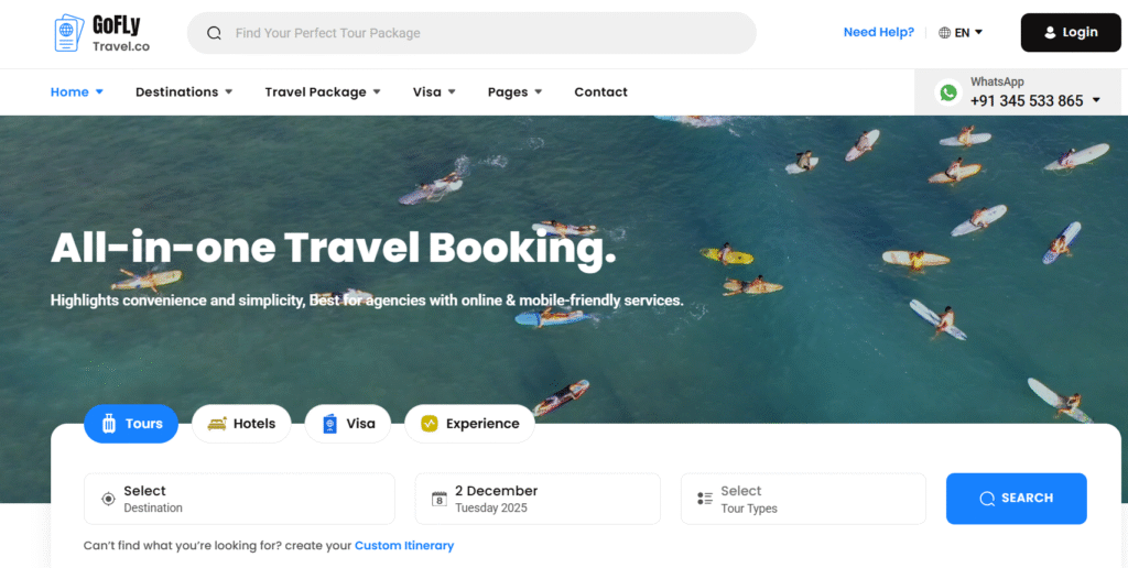 9. Gofly – Tour Booking and Travel Agency WordPress Theme